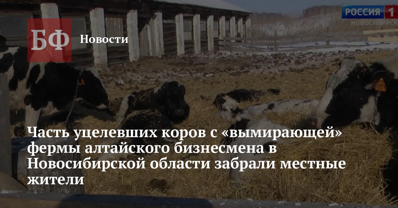 10 коров, которые оставались в живых на ферме алтайского бизнесмена в селе Шайдурово Новосибирской области, забрали к себе по домам местные жители, а еще двух представитель собственника продал, сообщила ИА «Банкфакс» глава Шайдуровского сельсовета Вера Коробейникова. Напомним, что в этом хозяйстве скот умирал от голода. На момент, когда о ситуации рассказали СМИ, там оставалось 12 голов из нескольких сотен. Собственником предприятия называют алтайского предпринимателя Михаила Переверзева.