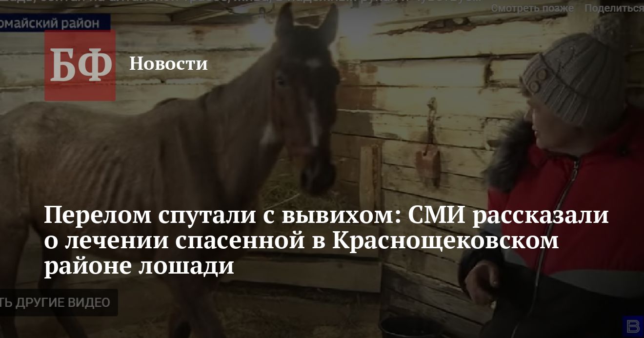 У молодой кобылы, которую «всем миром» спасали в Краснощековском районе после ДТП, оказался не открытый перелом, а вывих. Ее поврежденную ногу прооперировал известный в Алтайском крае ветеринар Артем Кучер. Предполагается, что уже летом животное будет ходить, рассказали «Вести-Алтай». Новая хозяйка лошади Наталья Ясакова, которая со скандалом забрала ее к себе, показала журналистам свою питомицу.
