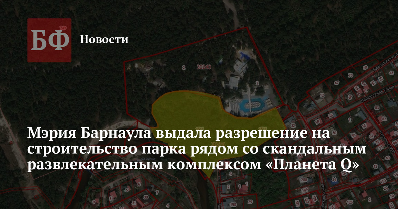Профильный комитет администрации Барнаула выдал разрешение на строительство парка культуры и отдыха в поселке Борзовая Заимка по улице Байкальская, 47 «А», пишет «Толк». Этот участок прошлым летом взял в аренду директор и один из собственников развлекательного центра «Планета Q» Юрий Погуляев. Будущий парк и заведение граничат друг с другом. Жители Борзовой Заимки считают, новый объект станет продолжением «Планеты Q», которая докучает им громкими вечеринками.