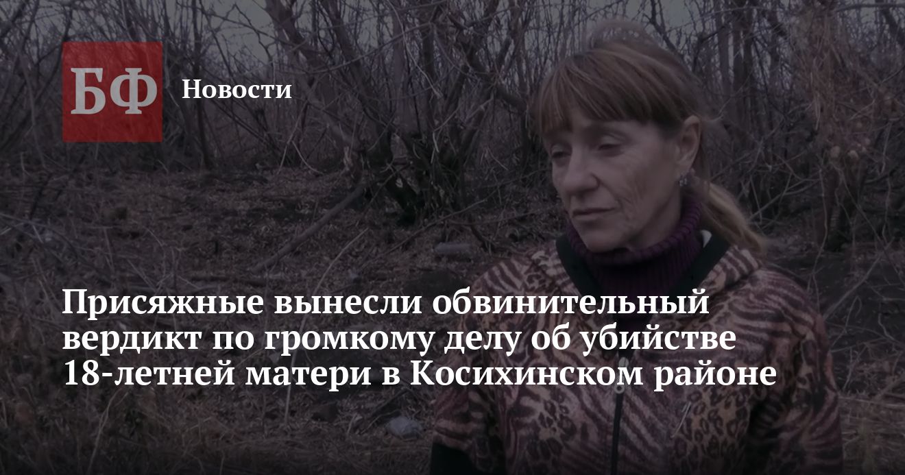 Присяжные заседатели решили, что в громком убийстве жительницы Косихинского района, молодой матери Евгении Парубовой, произошедшем в сентябре 2021 года, виновна семья ее сожителя. Мать парня и его отчима признали не заслуживающими снисхождения, окончательное наказание определит суд. Следователи в условиях неочевидности по крупицам восстанавливали цепочку событий, приведших к трагедии, сообщает СУ СКР по Алтайскому краю. Еще в 2021 году родственники погибшей обращались на «Первый канал», в шоу «Мужское и женское», чтобы добиться правды от людей, впоследствии ставших обвиняемыми, но те все отрицали.