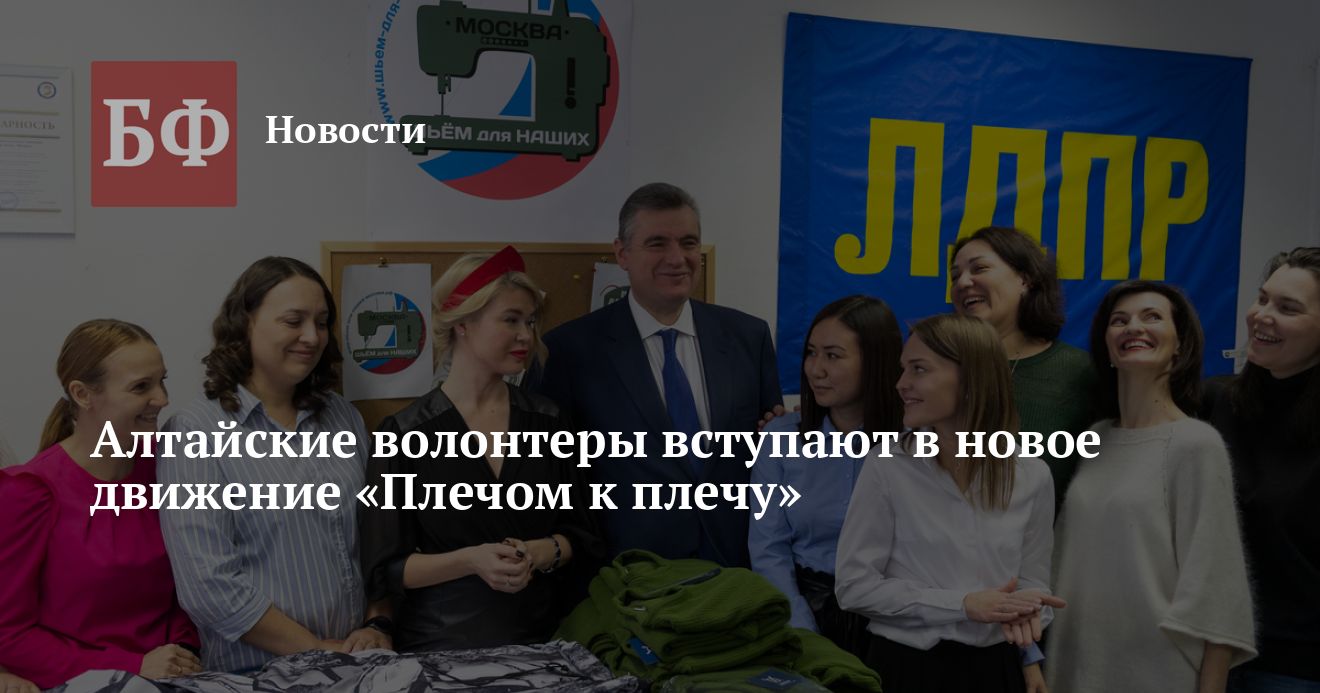 Алтайских добровольцев, неравнодушных к судьбе наших бойцов на передовой, партия ЛДПР призвала объединиться в новом движении «Плечом к плечу». О его создании рассказал лидер партии Леонид Слуцкий. Он призвал присоединяться к новому движению всех, кто готов помогать фронтовикам, находясь в тылу.