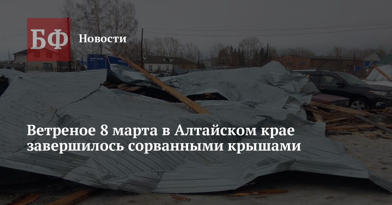 8 марта в Алтайском крае была штормовая погода с мощными порывами ветра. В ряде городов и районов пострадала социальная инфраструктура. Так, в селе Новичиха во время бури оторвалась крыша детско-юношеской спортивной школы, сообщили очевидцы в сообществе «Инцидент Барнаул». Кроме того, кровлю снесло у сельского детского сада в Тюменцево, из-за чего были повреждены припаркованные неподалеку автомобили. В Ребрихе крышу сорвало у здания магазина. Отметим, что в случае Новичихи у местных жителей вызвало вопросы качество установки крыши: «Качество работы — на фото. Из чего делали, из отходов древесины? Где балки, где доски, как они крепили крышу к зданию, на саморезы и гвозди?» — возмутились жители в комментариях к сообщению в «Инцидент Барнаул».