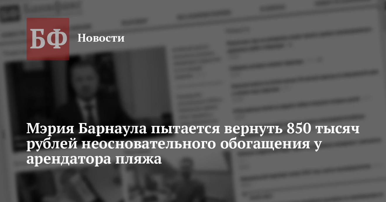 В феврале 2023 года комитет по земельным ресурсам Барнаула подал иск к ООО «Водный мир», которое обслуживает одноименный пляж. Исходя из материалов дела, власти пытаются взыскать 850 тысяч рублей, из которых большая часть средств — неосновательное обогащение за период с июля 2019 года по ноябрь 2020-го, плюс небольшая сумма процентов за пользование чужими средствами. Заявление уже принято к производству, следующее заседание процесса назначено на 23 марта.