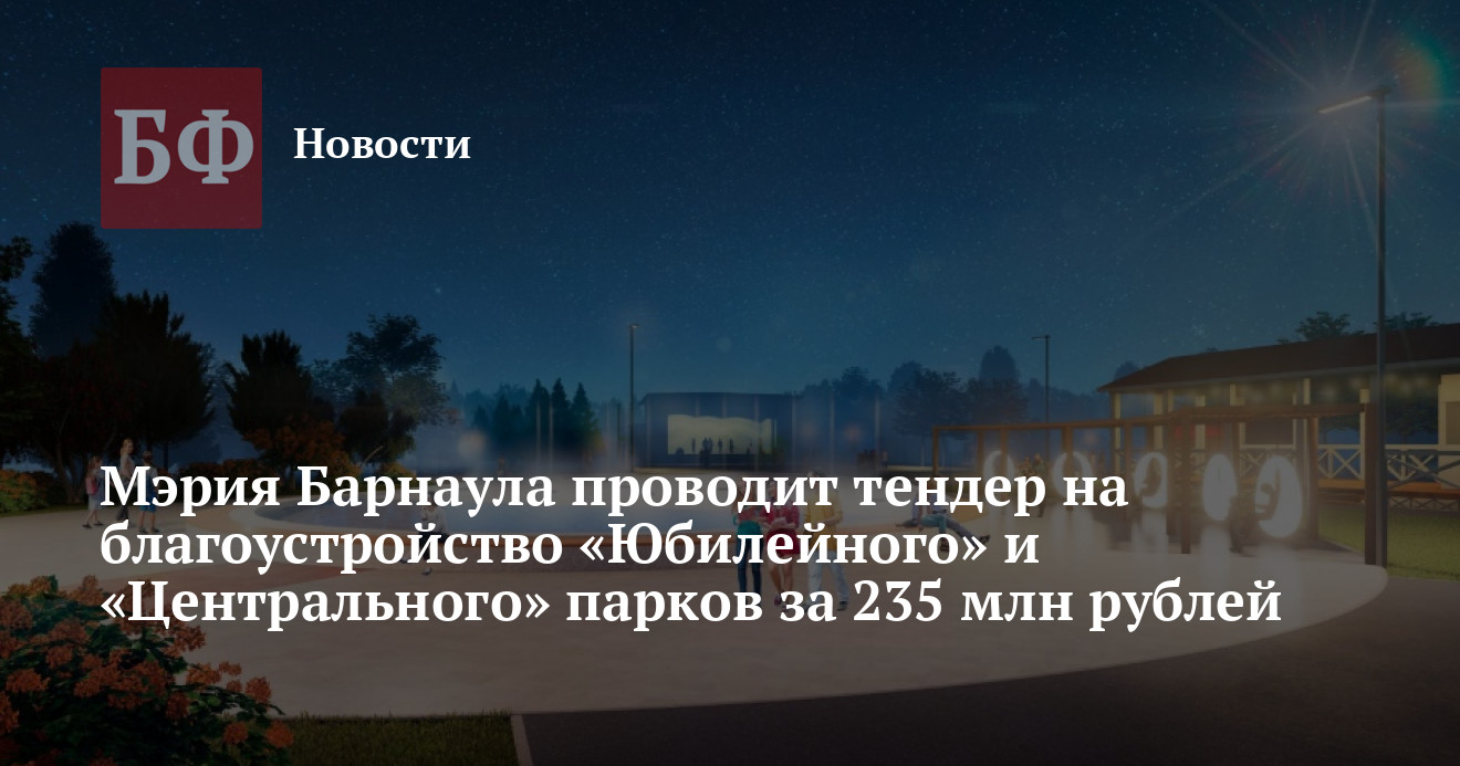 10 марта комитет по дорожному хозяйству Барнаула объявил аукцион по определению подрядной организации, которая проведет работы в парках в рамках профильного нацпроекта. Как следует из документов, в этом году средства направят на реновацию Центрального, а также продолжат возрождать Юбилейный. Начальная максимальная цена контракта составила почти 235,2 млн рублей.