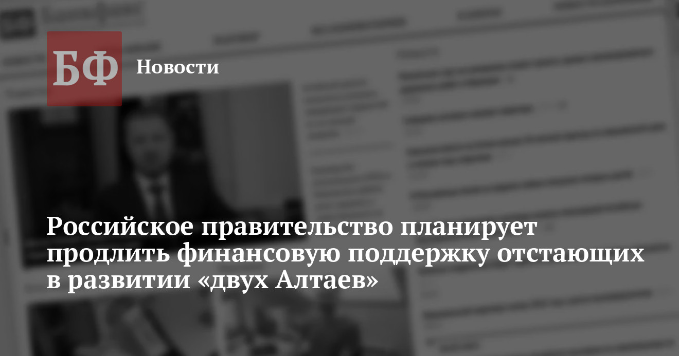 Поддержка 10 регионов с низким уровнем социально-экономического развития, в число которых входят Алтайский край и Республика Алтай, продолжится. О таком решении заявил в своем докладе премьер-министр РФ Михаил Мишустин на ежегодном отчете правительства в Госдуме. На сайте кабмина РФ сообщается, что в случае успеха индивидуальные программы могут быть продлены и масштабированы на другие регионы.
