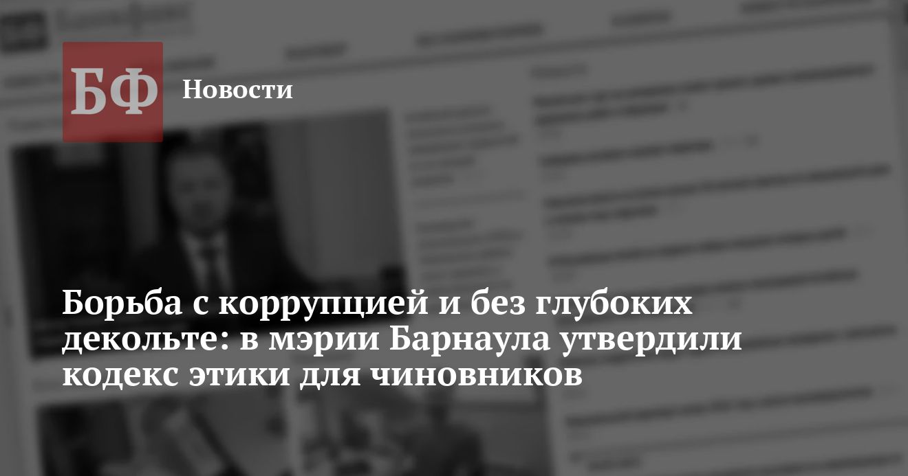 23 марта мэр Барнаула Вячеслав Франк подписал постановление, которым утвердил кодекс этики и служебного поведения муниципальных служащих города. Это свод общих принципов, который устанавливает правила поведения. Ими должны руководствоваться чиновники всех должностей. Документ будет необходимо изучать тем, что трудоустраивается на работу в органы власти муниципалитета. Также кодекс призван укрепить авторитет местного самоуправления и доверие граждан к государству. Он должен служить основной для формирования морали в сфере муниципальной службы и уважительного к ней отношения. С его помощью осуществляется чиновничий самоконтроль.