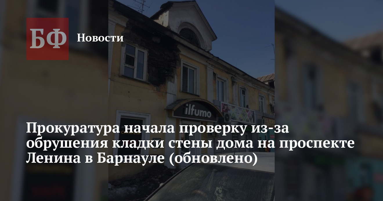 Как указывает пресс-служба прокуратуры, 28 марта произошло отслоение кирпичной кладки стены на многоквартирном доме на проспекте Ленина в Барнауле. С учетом того, что в доме проживают граждане, по поручению прокурора Алтайского края Антона Германа на место происшествия выехал прокурор Железнодорожного района Барнаула Владимир Елизаров. Проводится проверка, в рамках которой будет оценено выполнение обязанности по содержанию имущества, деятельности управляющей компании, принят весь комплекс мер прокурорского реагирования, направленный на защиту прав граждан.