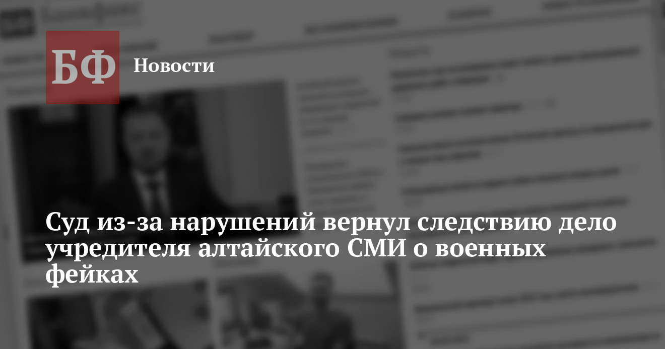 Горно-Алтайский городской суд принял решение о возврате органам следствия материалов уголовного дела в отношении обозревателя и учредителя регионального еженедельника «Листок» Сергея Михайлова, которого обвиняют в распространении фейков о действиях ВС РФ в рамках спецоперации на Украине. Соответствующая отметка появилась на сайте суда.