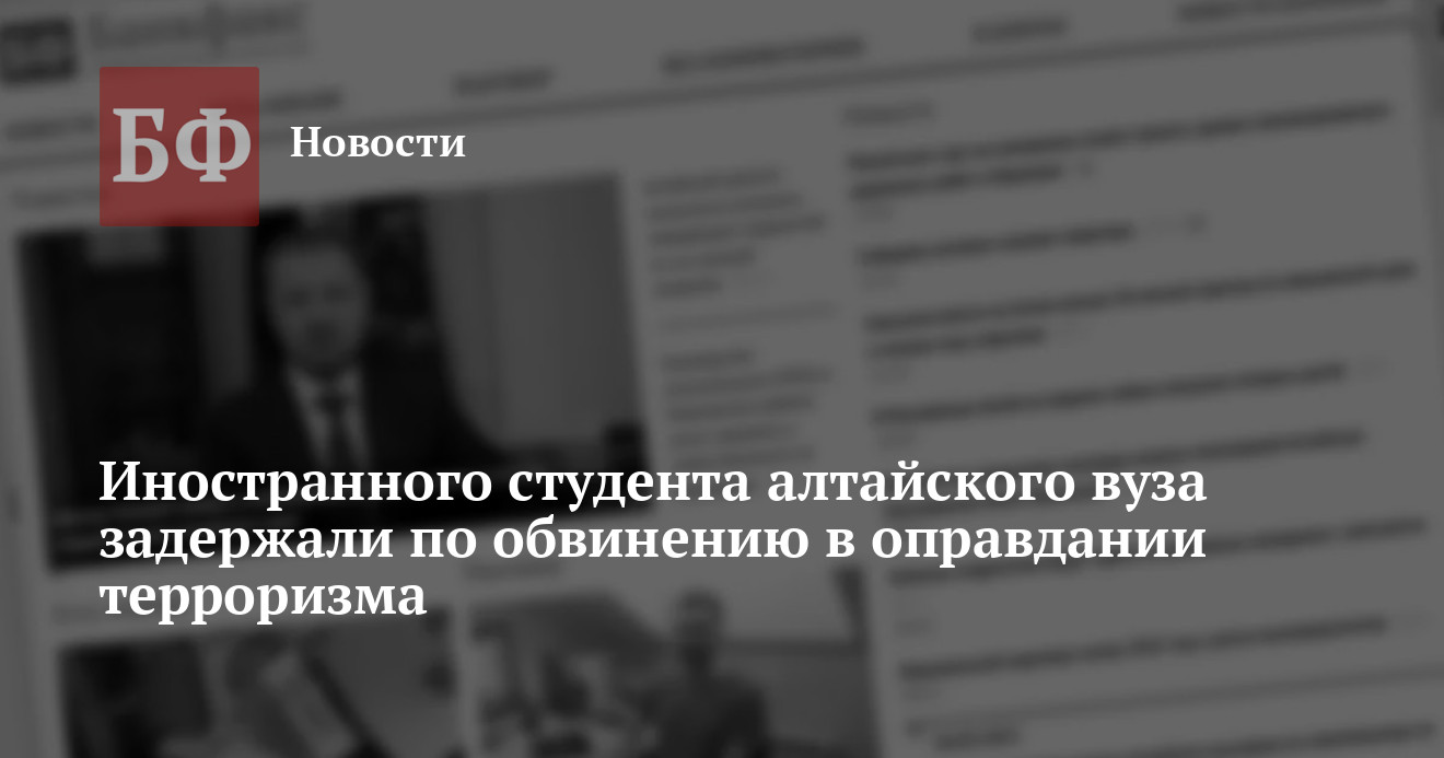 В одном из вузов Алтайского края иностранный студент занимался пропагандой терроризма. По сообщению УФСБ по региону, молодой человек был задержан за беседы запрещенной в РФ организации, действующей в Афганистане.