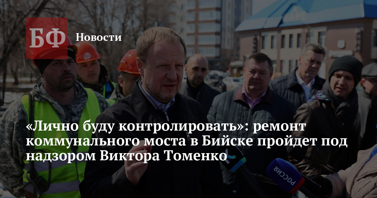 22 апреля Виктор Томенко с рабочим визитом посетил Бийск, где провел ряд встреч. Так, например, он проконтролировал ход ремонтных работ на коммунальном мосту, которые начались в этом году. Глава города Виктор Щигрев рассказал, как решается проблема с объездом моста, и что делается, чтобы люди не стояли в пробках. Как и оговаривалось ранее, на переправе организуют реверсивное движение на время проведения ремонт, то есть до сентября этого года. Туристов, которые едут транзитом по «Чуйскому тракту», перенаправят на объездную дорогу. «Лично буду контролировать ход работ. Не должно быть такого, что люди едут в объезд, стоят в пробках и видят, что работы на мосту не ведутся. Считаю, что нужно установить камеру, направленную на мост, и сделать трансляцию, например, на сайте горадминистрации. Чтобы все желающие могли в реальном времени следить за ходом ремонта», — высказался Томенко.