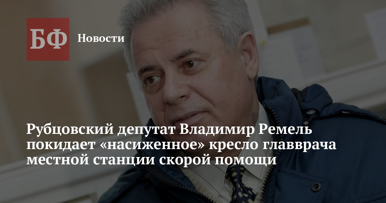 Депутат Рубцовского горсовета Владимир Ремель решил уйти с поста главного врача КГБУЗ «Станция скорой медицинской помощи Рубцовска», которой он руководит уже больше 30 лет. Об этом он сам сообщил ИА «Банкфакс». Он не стал подробно останавливаться на причинах своего решения. Однако наблюдатели полагают, что его уход может быть связан с недовольством краевого Минздрава работой управленца.