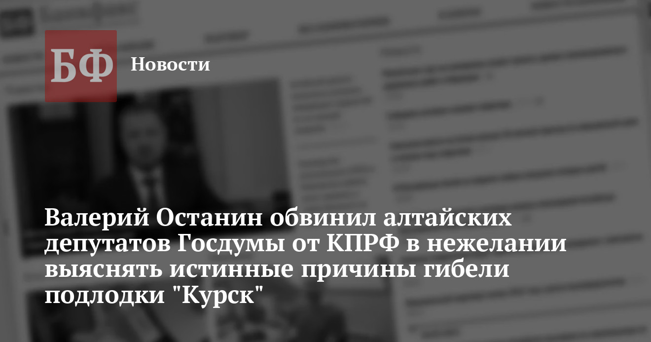 В пресс-релизе, распространенном на днях фракцией «Яблоко» Госдумы России, озвучено мнение депутата Валерия Останина по поводу создания независимой комиссии, которая бы расследовала причины аварии подлодки «Курск». Останин, в частности, считает, что «голосование в Государственной Думе 15 сентября по созданию независимой парламентской комиссии для расследования обстоятельств гибели атомохода «Курск» и непринятию должных мер по спасению экипажа должностными лицами государства, предложенное парламентариями фракции «Яблоко», показало, кто из народных избранников на самом деле выступает за то, чтобы наши солдаты, матросы, офицеры перестали быть «камикадзе», «пушечным мясом» для правителей государства, а кто радеет об этом только на словах, а на самом деле пошел по пути скорейшего предания забвению очередной трагедии, повлекшей многочисленные жертвы…"