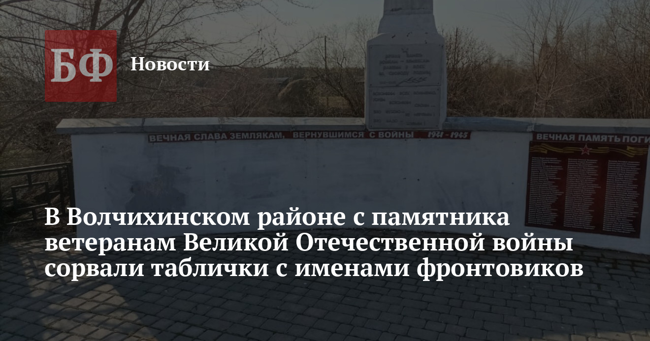 О происшествии в селе Селиверство 30 апреля рассказали в сообществе «Наша Волчиха» в соцсети «Одноклассники». По словам местных жителей, 28 апреля на памятнике ветеранам ВОВ обновляли таблички с именами фронтовиков, а ночью четыре из них были сорваны.
