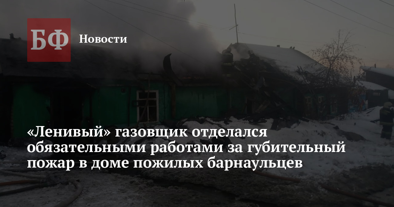 Железнодорожный районный суд Барнаула вынес приговор 41-летнему мастеру аварийно-ремонтной службы ОАО «Алтайкрайгазсервис», по недосмотру которого в январе 2021 года погиб пожилой мужчина. Как сообщают краевые СУ СКР и прокуратура, подсудимому хотели назначить наказание в виде реального лишения свободы, но в итоге заменили санкцию на обязательные работы.