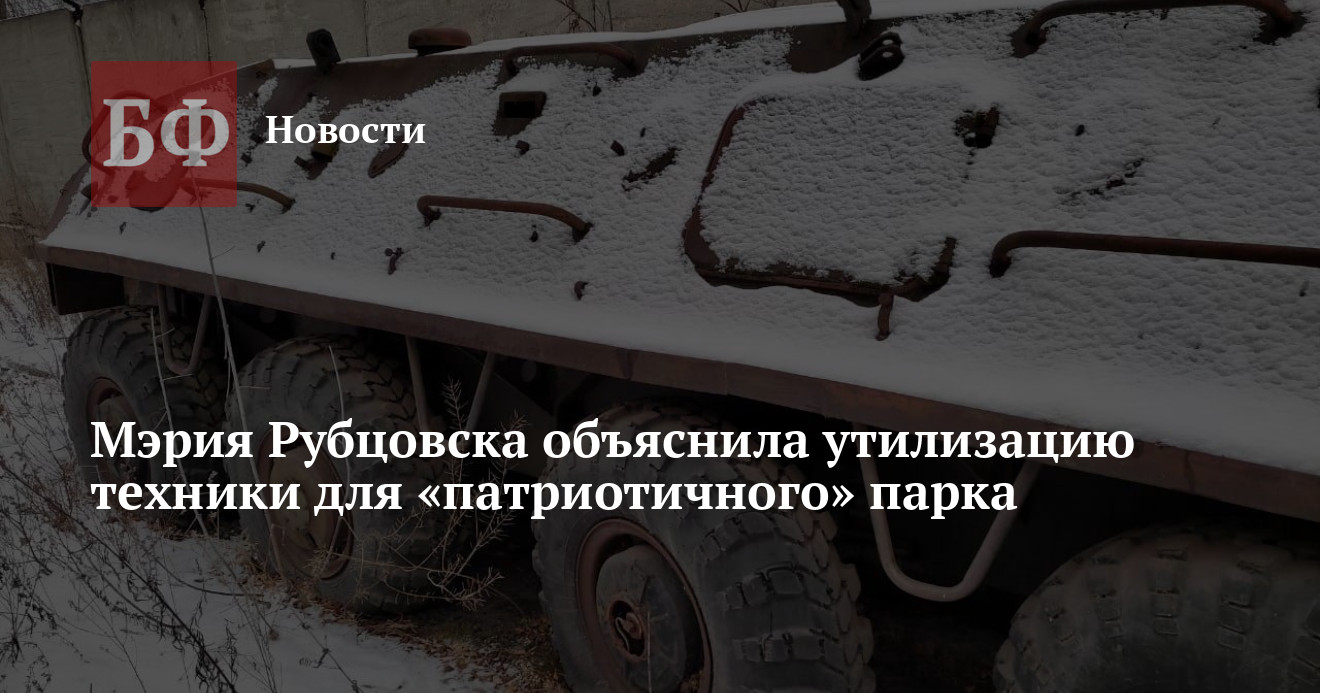 Мэрия Рубцовска прокомментировала резонансную историю со сдачей на металлолом демилитаризованной военной техники, предназначавшейся для экспонирования в городском парке «Патриот». В публикации, размещенной 11 мая на сайте мэрии, чиновники говорится, что БТР-60П и самолеты Як-52 с АН-2 МТУ были переданы на баланс города Алтайским Росимуществом именно для установки в «Патриоте». Имущество перешло из федеральной собственности в муниципальную абсолютно безвозмездно. После этого, по официальной версии властей, специалисты ООО «Алтайтрансмаш-сервис» обследовали БТР-60П и пришли к выводу, что он не подлежит восстановлению.