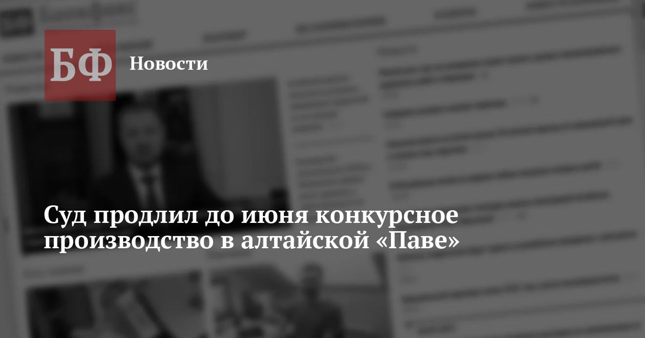 Арбитражный суд Республики Алтай вновь принял решение продлить конкурсное производство в ОАО «Пава» (ранее — крупный агрохолдинг Алтайского края) до 27 июня текущего года. Соответствующее определение размещено на сайте суда. Конкурсный управляющий просит взыскать с троих экс-руководителей агрохолдинга-банкрота 123 млн рублей.