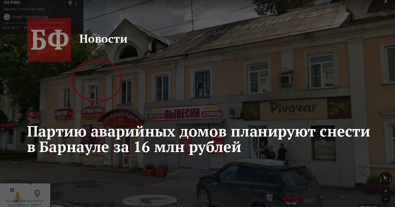 Власти Барнаула объявили поиск подрядчиков на снос нескольких аварийных домов. Всего демонтажу подлежит шесть объектов. Общая сумма контрактов составляет почти 16 млн рублей. Соответствующие тендеры опубликованы на портале госзакупок.