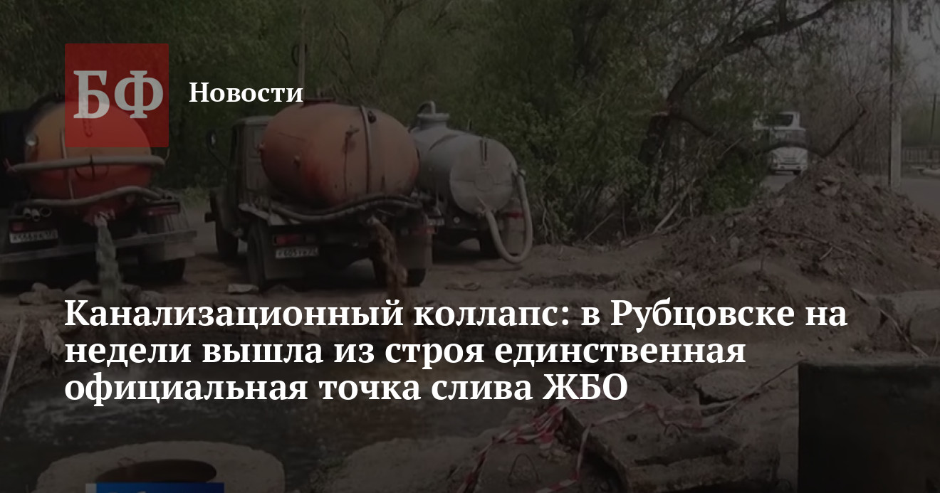 25 мая о рубцовском канализационном коллапсе проинформировало сообщество «Блогерша Рубцовск» в социальной сети «ВКонтакте». Из опубликованного видеоролика следует, что часть местных ассенизаторов отказалась от слива ЖБО в проблемной точке. Свои машины они опорожняли в обычные канализационные колодцы, что противозаконно. «Вы видели, в каком состоянии сейчас находится центральный коллектор. Создайте условия, чтобы мой груженый автомобиль туда не упал. Да ладно, мы. Прохожие, которые идут мимо… Слава богу, что пока еще никто не пострадал», — объяснил один из ассенизаторов. А его коллега заявил, что Рубцовску требуется минимум три официальные точки слива ЖБО — «в каждом районе города, как в нормальных городах».