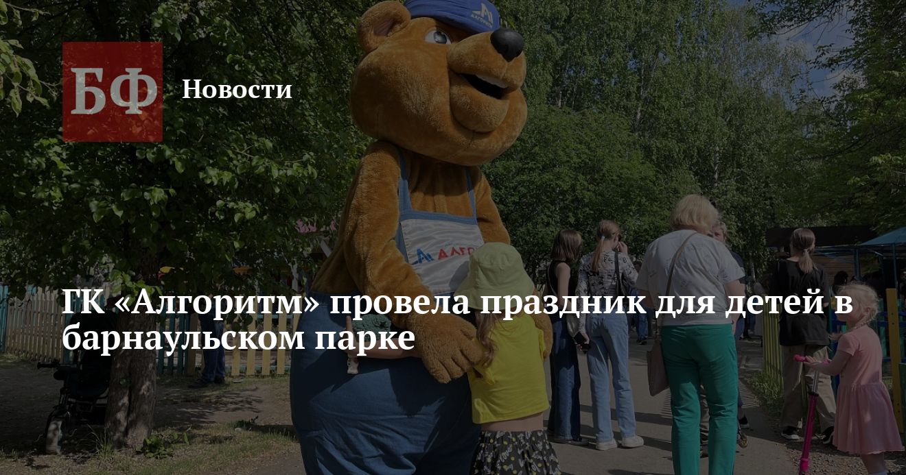 На празднике, организованном ГК «Алгоритм» в парке, дети вместе с родителями и аниматорами пели и танцевали, играли в дартс и дженгу, а еще угощались мороженым, сладкой ватой, попкорном и лимонадом. На мероприятии были и фирменные персонажи компании — белый медведь и апельсиновый мишка.