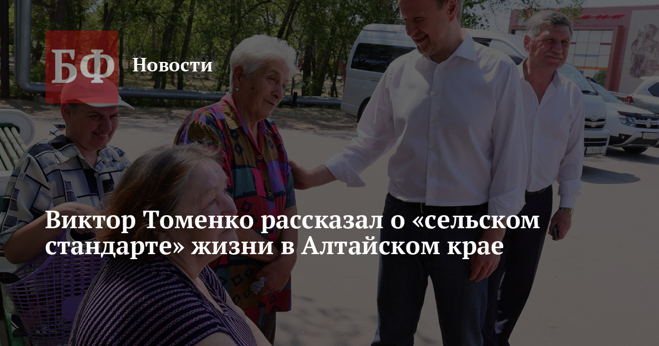 2 июня губернатор Алтайского края Виктор Томенко побывал в Благовещенском районе, где посетил ряд объектов различного профиля и озвучил идею внедрения в регионе так называемого «сельского стандарта» — определенного уровня развития инфраструктуры сельских территорий, к которому предстоит стремиться муниципалитетам.
