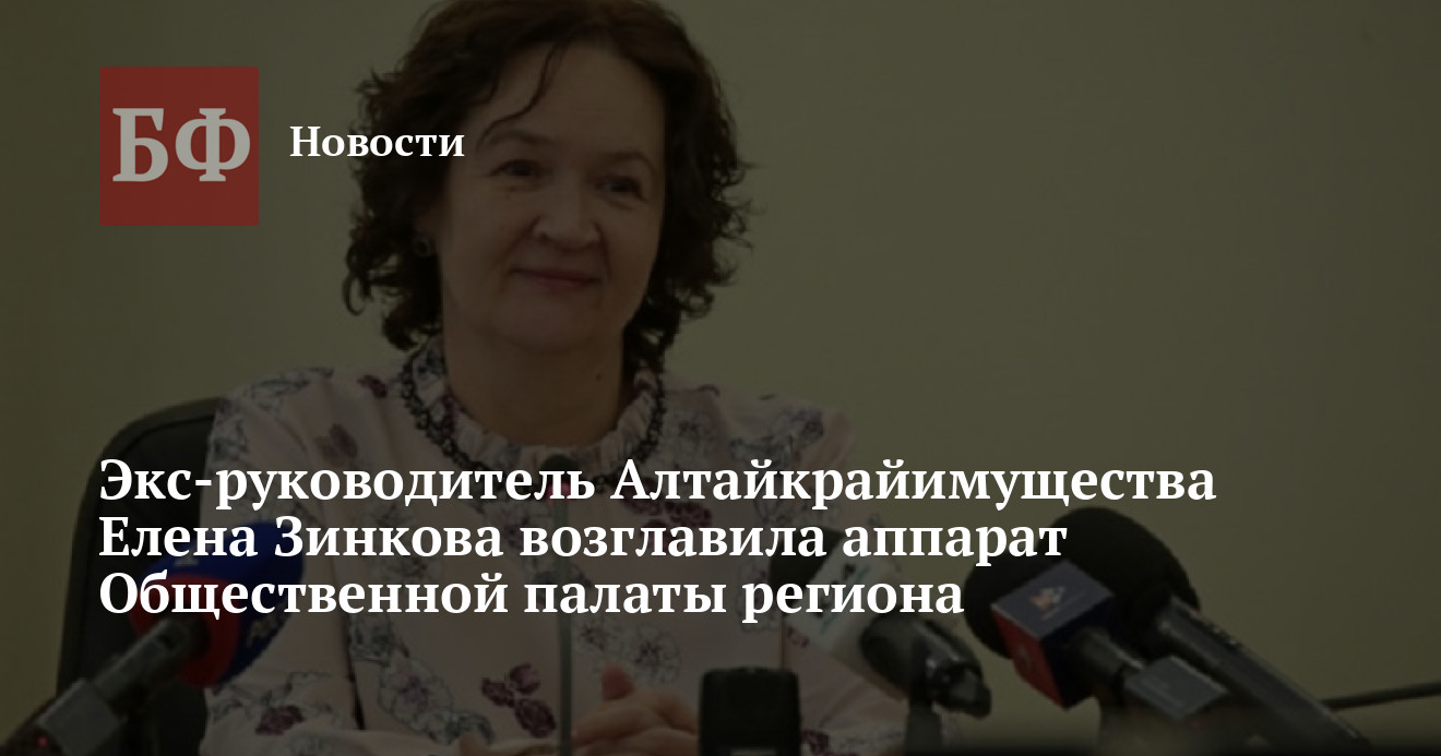 В Общественной палате Алтайского края в преддверии избрания нового состава сменился руководитель аппарата. По данным ЕГРЮЛ, его возглавила Елена Зинкова — бывшая глава регионального управления имущественных отношений.