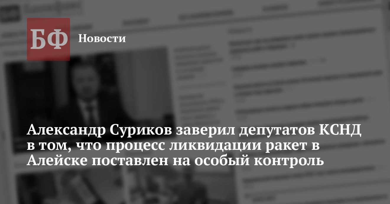 В ходе своего выступления перед депутатами Александр Суриков сообщил о том, что им уже дано поручение поставить на особый контроль процесс демонтажа ракет и пусковых установок в Алейской дивизии ракетных войск, и в первую очередь — наиболее острый вопрос слива топлива.