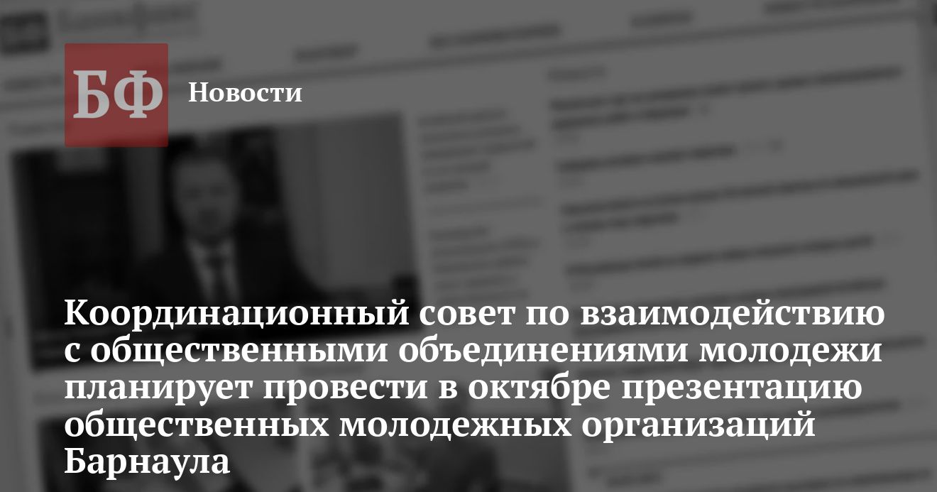 Об этом сообщили в Координационном совете по взаимодействию с общественными объединениями молодежи, созданном при отделе по делам молодежи города Барнаула. По словам лидера алтайского отделения движения «Россия молодая» Юрия Еремеева, своей основной задачей недавно созданный Совет считает объединение усилий различных движений города для выработки и реализации единой политики барнаульской молодежи.