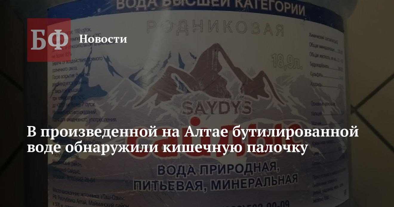 Управление Роспотребнадзора по Республике Алтай обнаружило бактерии кишечной палочки в питьевой бутилированной воде, произведенной на территории региона. Как сообщает пресс-служба ведомства, речь идет о продукции под торговой маркой «Сайдыс».