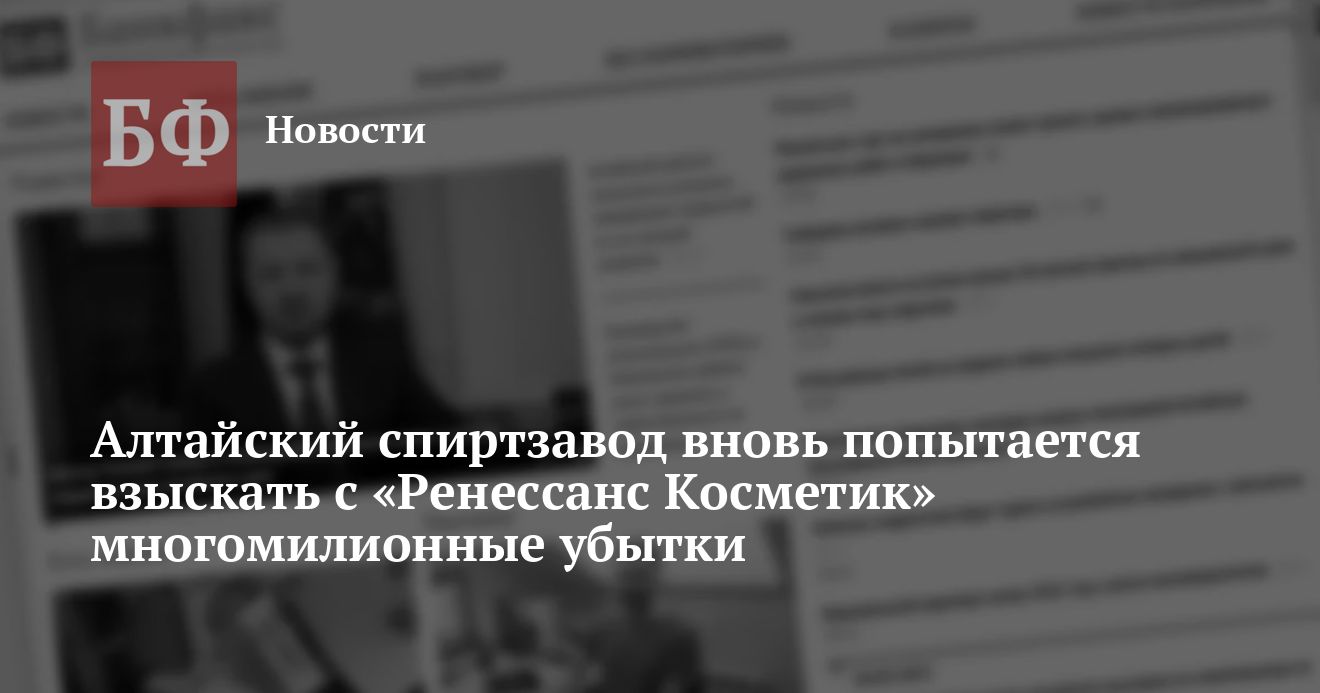 В октябре 2022 года ООО «Ренессанс Косметик» отказало спиртзаводу в возмещении убытков, говорится в материалах дела. В феврале 2023 года Арбитражный суд Алтайского края пришел к выводу, что мотивы отказа «Ренессанс Косметик» от оплаты убытков являются обоснованными.