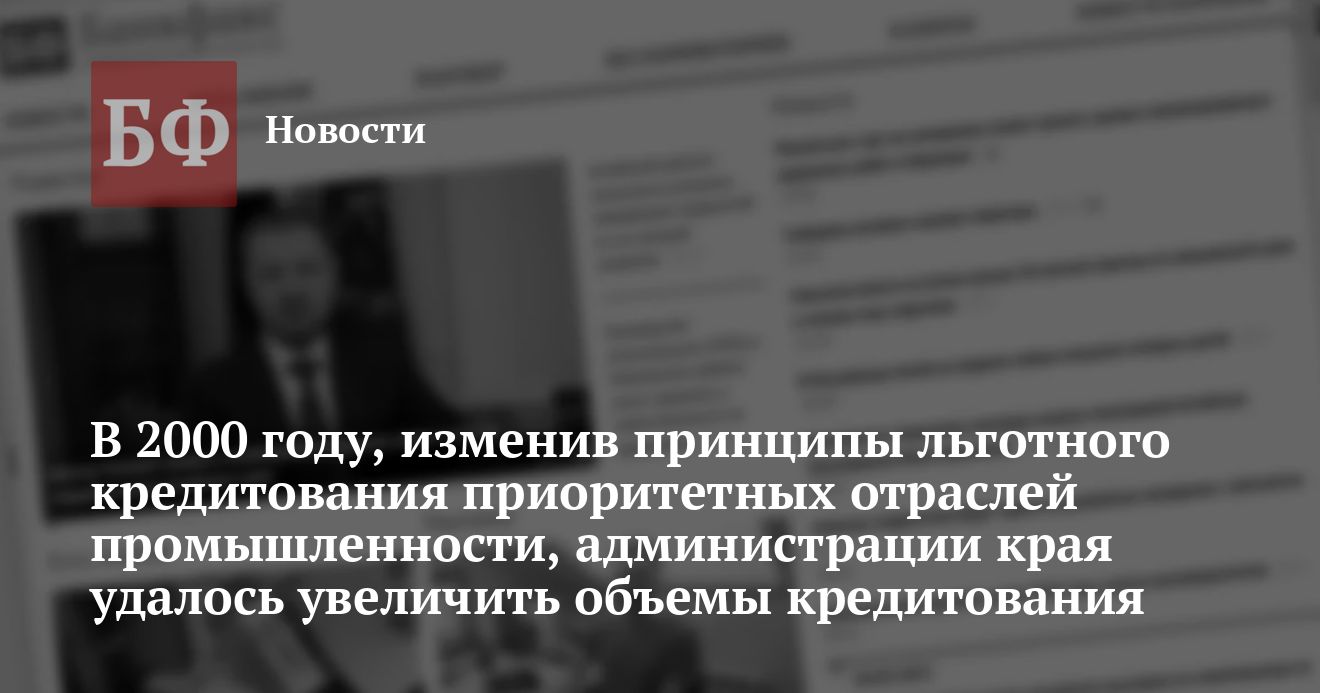 В этом году, изменив принцип предоставления льготных кредитов, администрации удалось почти в три раза увеличить сумму льготного кредитования промышленных предприятий. По словам Байкалова, если раньше из краевого бюджета выделялись средства на предоставление льготного кредита, то в этом году была введена новая практика — средства бюджета направляются на погашение процентной ставки по кредиту в коммерческом банке. Это позволило значительно увеличить объемы привлекаемых средств. Так, если за 8 месяцев 1999 года краевой бюджет смог выделить на предоставление льготных кредитов около 60 млн. рублей, то за аналогичный период текущего года предприятия края смогли привлечь в качестве кредитов около 180 млн. рублей, процентная ставка по которым компенсируется из краевого бюджета.