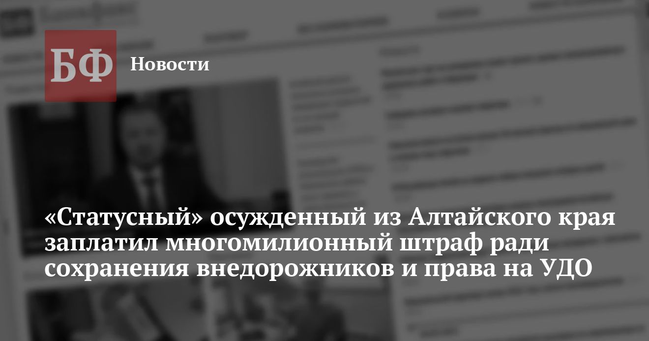 Судебные приставы добились уплаты штрафа от осужденного за коррупцию барнаульца, который мог лишиться права на УДО и двух автомобилей. Как сообщила пресс-служба главка ФССП по Алтайскому краю, с него взыскали 2,1 млн рублей. По данным «Банкфакса», речь может идти о бывшем заместителе министра строительства и ЖКХ Алтайского края Андрее Голубцове, приговоренном более чем к восьми годам лишения свободы за получение взяток.