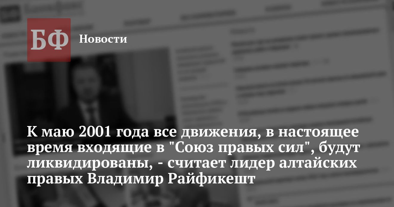 По словам лидера алтайского отделения «Союза правых сил» Владимира Райфикешта, руководство общественно-политического объединения СПС намерено к маю 2001 года ликвидировать все движения, входящие в настоящее время в состав объединения, и оставить единую организацию. Это позволит существенно сократить аппарат и объем средств, выделяемых федеральным штабом на содержание региональных отделений.