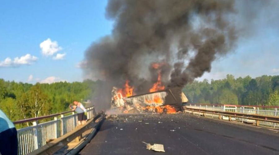 В роликах очевидцев с места происшествия видно, что один из столкнувшихся грузовиков упал с путепровода. От транспортного средства мало что осталось, как и от водителя, говорят свидетели произошедшего. Вероятно, с этим связано то, что его личность до сих пор не установили.
