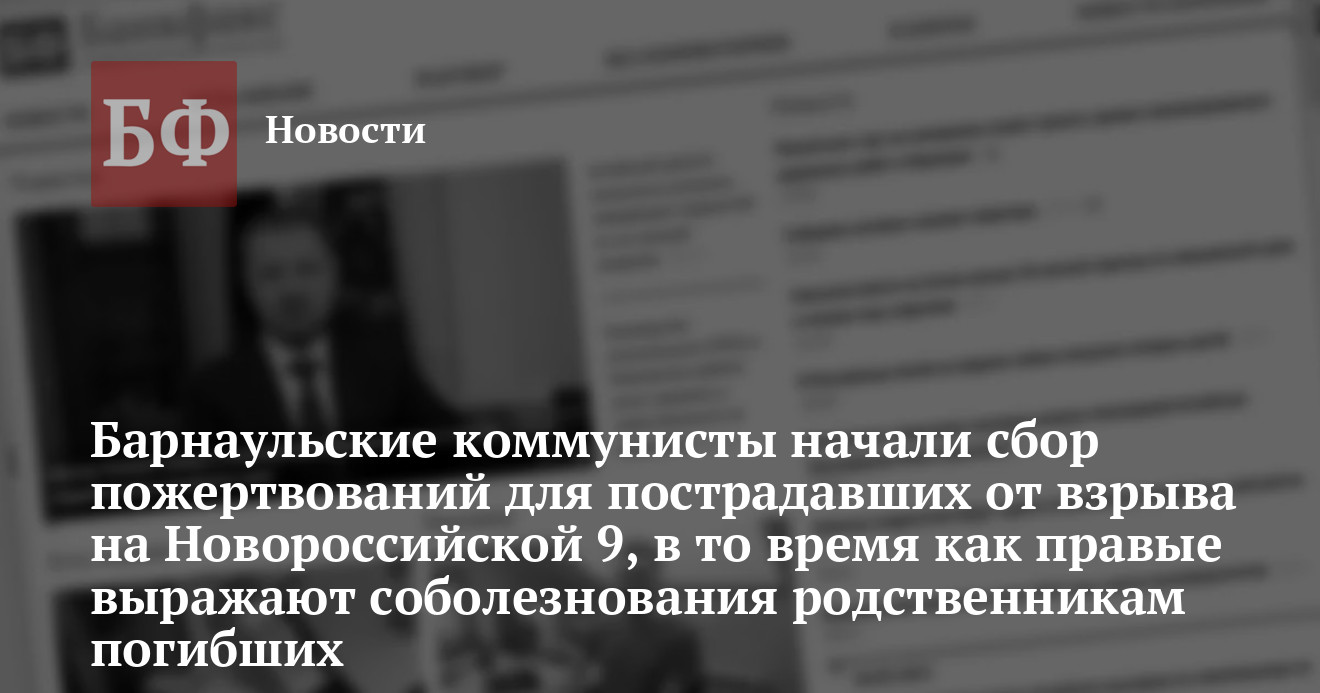В качестве первого шага алтайские коммунисты перечислили на внебюждетный счет социальной защиты администрации Железнодорожного района 10 тысяч рублей. По инициативе барнаульского отделения КПРФ в первичных партийных организациях города начался сбор пожертвований для пострадавших.