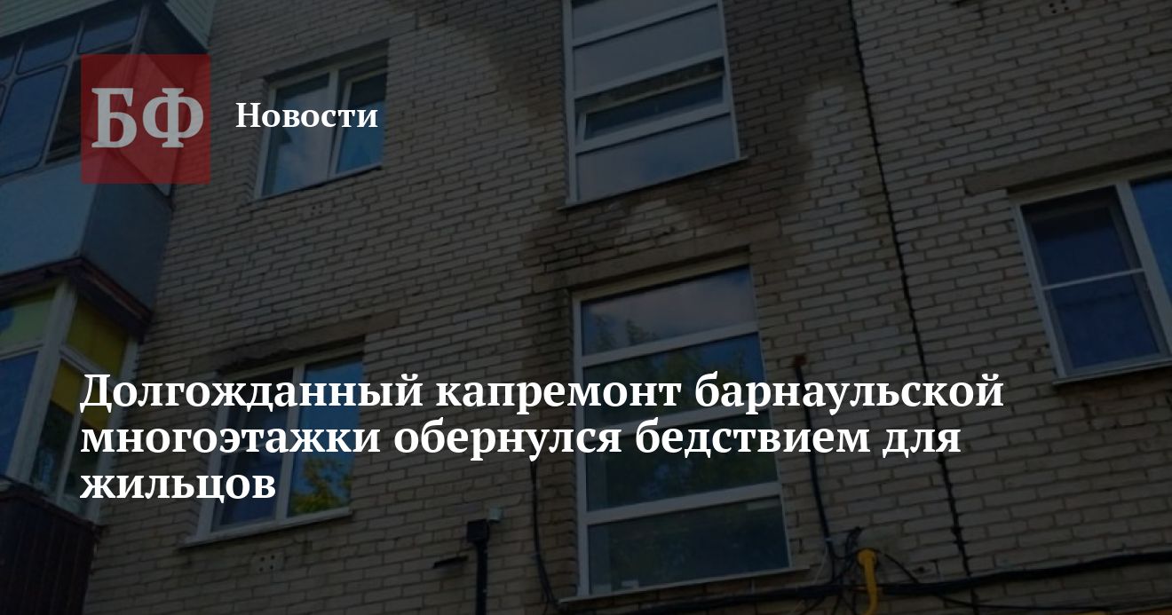 К исполнению решения суда приступили только в 2023 году. По сведениям сайта госзакупок, 12 января комитет жилищно-коммунального хозяйства администрации Барнаула заключил контракт на капремонт четырехэтажки с ООО «Союз» (директор Наталья Бегунова). Его цена составила 5 633 760,64 рубля, на работы отводилось 214 календарных дней, то есть ремонт следовало завершить до середины августа.