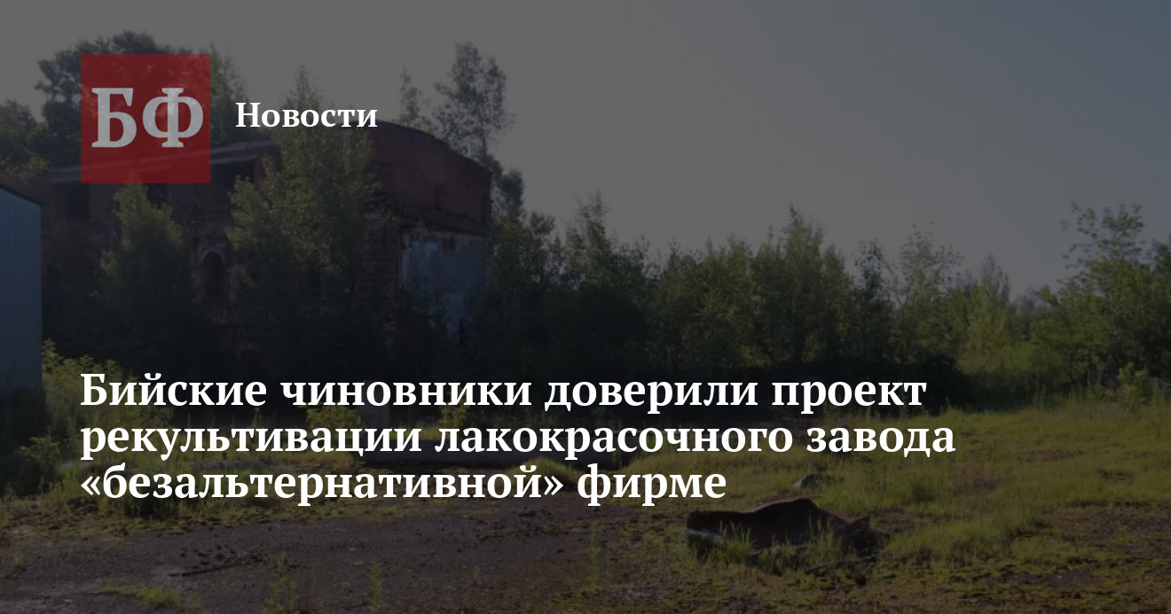 Мэрия Бийска подвела итоги конкурса по отбору подрядчика для разработки проектно-сметной документации на рекультивацию территории бывшего лакокрасочного завода, уже давно «отравляющей» жизнь горожан. Как следует из информации с сайта госзакупок, контракт без борьбы получила барнаульская фирма «Спецсервис», которая единственная подала заявку на участие.