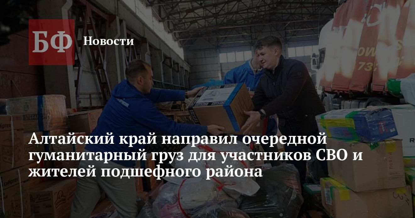 Фуру гуманитарного груза из Алтайского края отправляют на территорию проведения спецоперации каждые две недели. На этот раз в состав груза вошли пять автомобилей, запчасти, шины, окопные печи, маскировочные сети, медикаменты, продукты питания, а также посылки от родных, для военных госпиталей — постель и лекарства. В связи с грядущей зимой, часть груза — это автономные печи и «буржуйки». В формировании очередной партии гумпомощи приняли участие сразу несколько общественных объединений Алтайского края, включая женское движение «Единой России», «Весточку из дома», «Разведку Сибирь» и региональный исполком Общероссийского народного фронта. «Одна из машин — в Быстроистокский район. Наполняем продукцией разнообразной. Она идет и нашим мобилизованным (техника, шины, инструменты, гвозди, скобы, прицелы), и мирному населению», — отметил руководитель регионального исполкома ОНФ в Алтайском крае Сергей Войтюк.