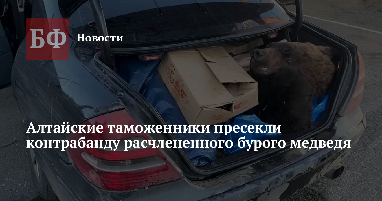 17 октября пресс-служба Алтайской таможни сообщила о том, что сотрудники ведомства пресекли контрабанду дериватов бурого медведя. Речь идет о замороженном мясе животного и частях тела (шкура, голова, лапы), из которых, предположительно, собирались сделать чучело.