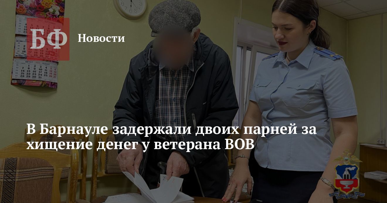 Сотрудники уголовного розыска Железнодорожного райотдела Барнаульского УМВД России задержали молодых людей, которые похитили около 300 тысяч рублей у 91-летнего ветерана Великой Отечественной войны по мошеннической схеме. Как отмечает пресс-служба краевого правоохранительного ведомства, парни лишь исполняли роль курьеров по указке реальных мошенников. Тем не менее их отправили под стражу.