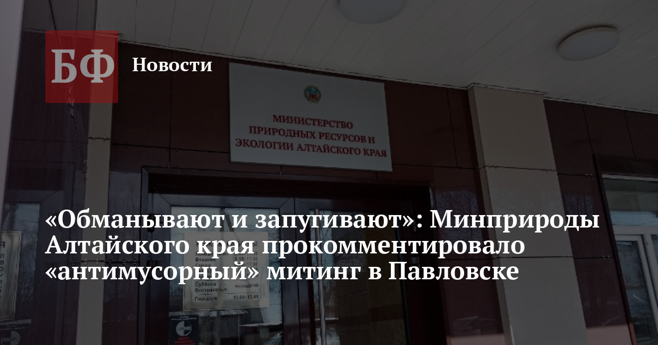 Митинг, прошедший 25 ноября в Павловске, это результат манипуляции людьми со стороны политиков, которые выступают за загрязнение окружающей среды. Такое видение сложившейся ситуации представило Минприроды Алтайского края. Официальная позиция чиновников опубликована на сайте ведомства.