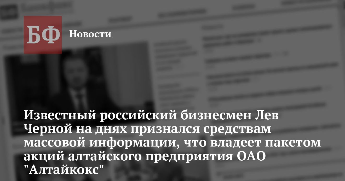 Об этом патриарх российского алюминиевого бизнеса Лев Черной заявил в интервью «Ведомостям». Сегодня Черной владеет крупными пакетами в металлургии, он партнер Дерипаски и Абрамовича по «Русалу». Отвечая на вопрос о своих активах, отметил, что «везде понемножку», и называл такие компании, как «Сибал», Уральский горно-металлургический комбинат, «Кузбассразрезуголь», «Алтайкокс», предупредив, что говорит не все.
