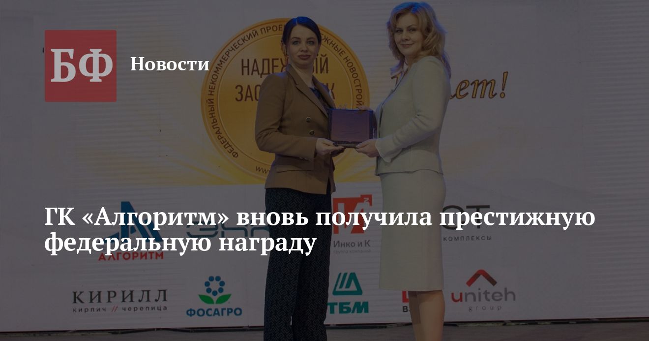 Группа компаний «Алгоритм» восьмой раз подряд стала обладателем Золотого Знака «Надежный застройщик России», который является одной из самых престижных премий в сфере жилищного строительства. Он вручается лучшим компаниям регионов после прохождения двухэтапной проверки юридической документации и фактической информации об их строящихся объектах.