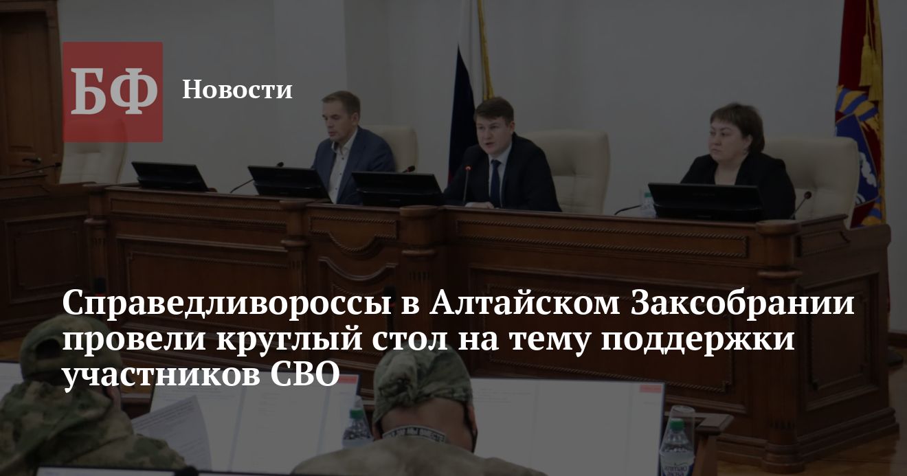 Фракция «Справедливая Россия — За правду» в Алтайском Заксобрании инициировала обсуждение усиления мер поддержки для участников спецоперации и их семей. Депутаты провели круглый стол в парламентском центре и обсудили развитие помощи военным, сообщила пресс-служба реготделения СРЗП.