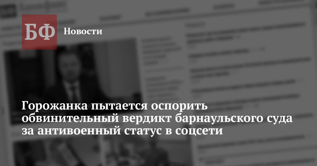Жительница Барнаула получила штраф в 30 тысяч рублей по статье о дискредитации российской армии за антивоенный статус в популярной соцсети. Как следует из предоставленных ею «Банкфаксу» документов, женщина уже подала жалобу на этот вердикт, хотя, по ее собственным словам, не питает надежды на отмену санкции. В то же время суд готовится рассмотреть в отношении нее еще три дела, возбужденных по той же статье.