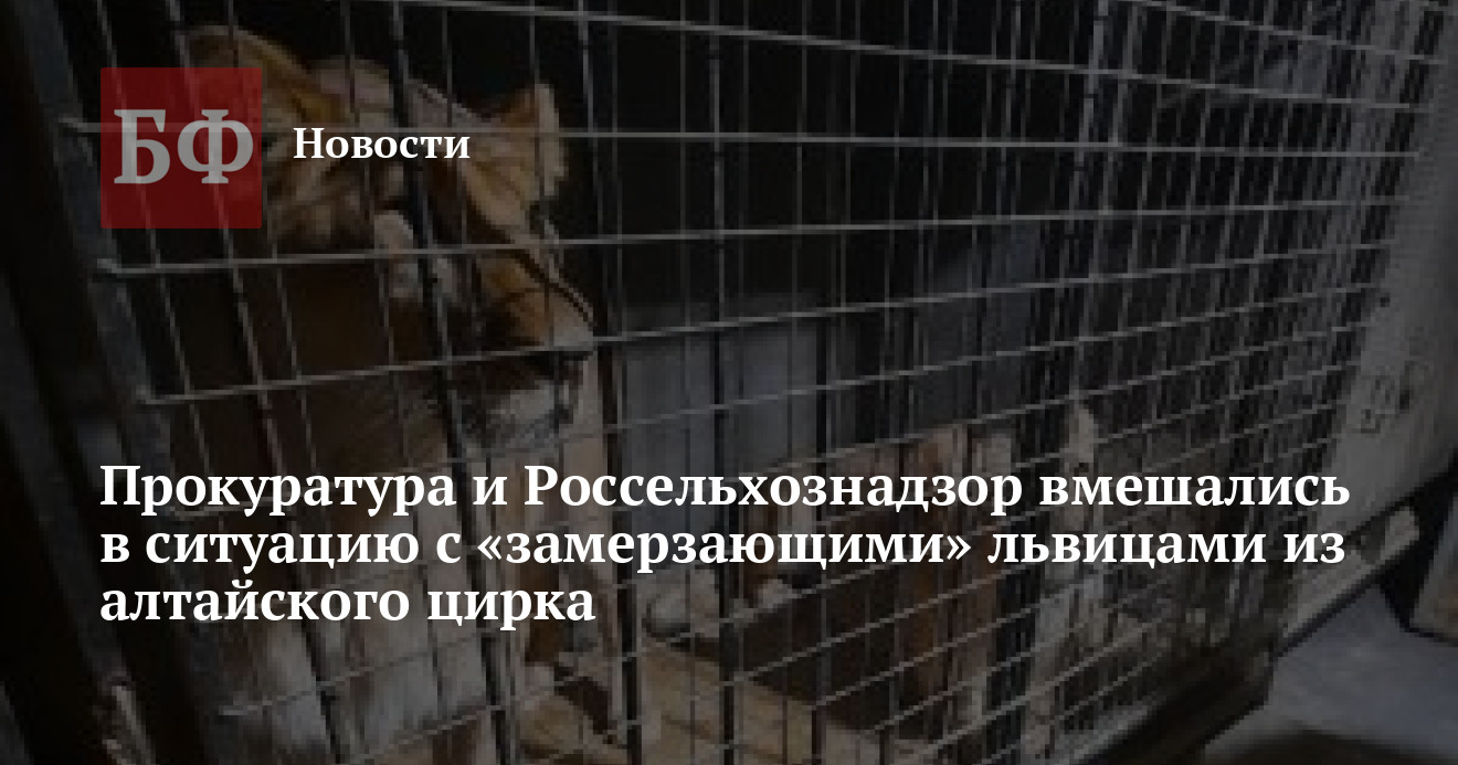 Управление Россельхознадзора по Челябинской и Курганской областям по требованию прокуратуры проведет проверку в отношении шапито из Рубцовска, сообщила пресс-служба ведомства. Поводом для разбирательства стала информация в СМИ об условиях содержания цирковых львиц. Якобы на протяжении нескольких месяцев звери живут в тесных транспортных клетках в холодном прицепе, который стоит на территории частного сектора Копейска. По ситуации успел публично высказаться алтайский депутат-комросс Сергей Малинкович. Он попросил губернатора края поучаствовать в спасении животных.