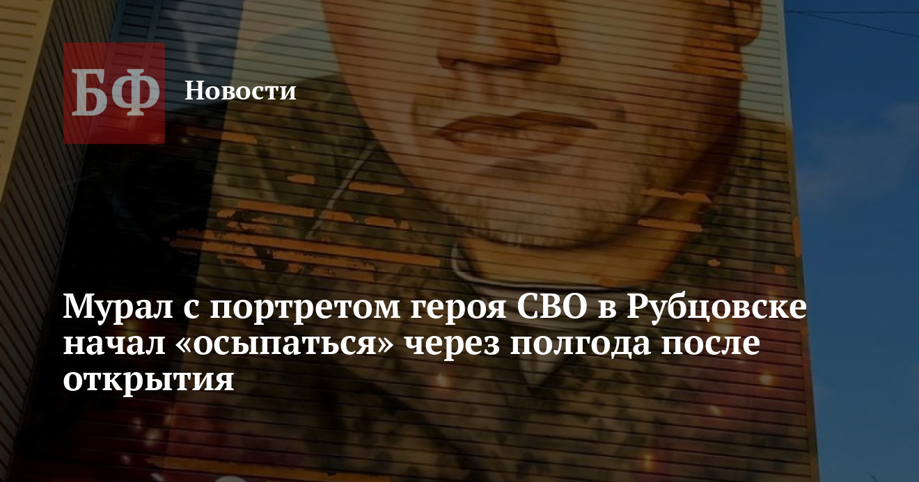 На мурале с портретом героя специальной военной операции Олега Шипицина, появившемся на стене рубцовской многоэтажки весной текущего года, начала осыпаться краска. Как пояснил художник из Барнаула Николай Замятин, принимавший участие в создании изображения, в следующем году он за свой счет обновит испорченные фрагменты. Следует отметить, что это не первая неприятность, связанная с данным муралом. Ранее возникала проблема с неухоженностью территории рядом с объектом. В ситуацию тогда вмешался губернатор Алтайского края Виктор Томенко, который поручил властям Рубцовска навести там порядок.