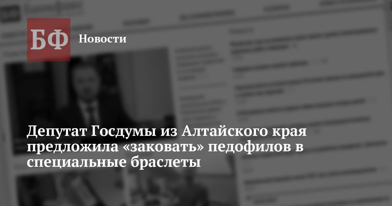 Уроженка Алтайского края Нина Останина, которая возглавляет один из комитетов Госдумы, настаивает на том, чтобы бессрочно надевать на педофилов после освобождения из тюрьмы браслеты с GPS-трекером. С такой инициативой она планирует выступить ко второму чтению законопроекта о запрете осужденным за сексуальные преступления против детей посещать некоторые локации.