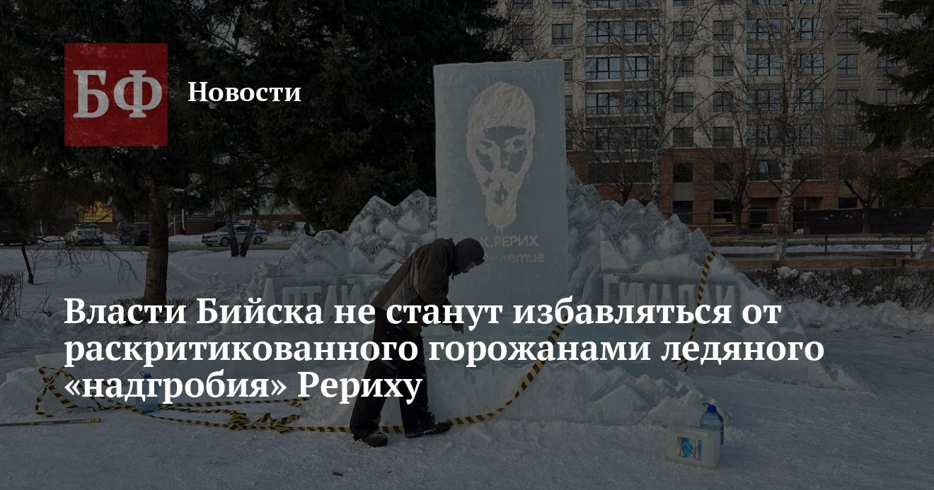 Мэр Бийска Виктор Щигрев прокомментировал шумиху, поднятую вокруг одной из ледяных скульптур в новогоднем снежном городке. Речь идет о композиции, посвященной художнику и мыслителю Николаю Рериху, которую горожане посчитали неуместной к празднику, да и вообще похожей на надгробную плиту. Несмотря на недовольство бийчан, якобы заручившихся поддержкой мэрии, Щигрев в своем Telegram-канале заявил, что избавляться от скульптуры никто не собирается.
