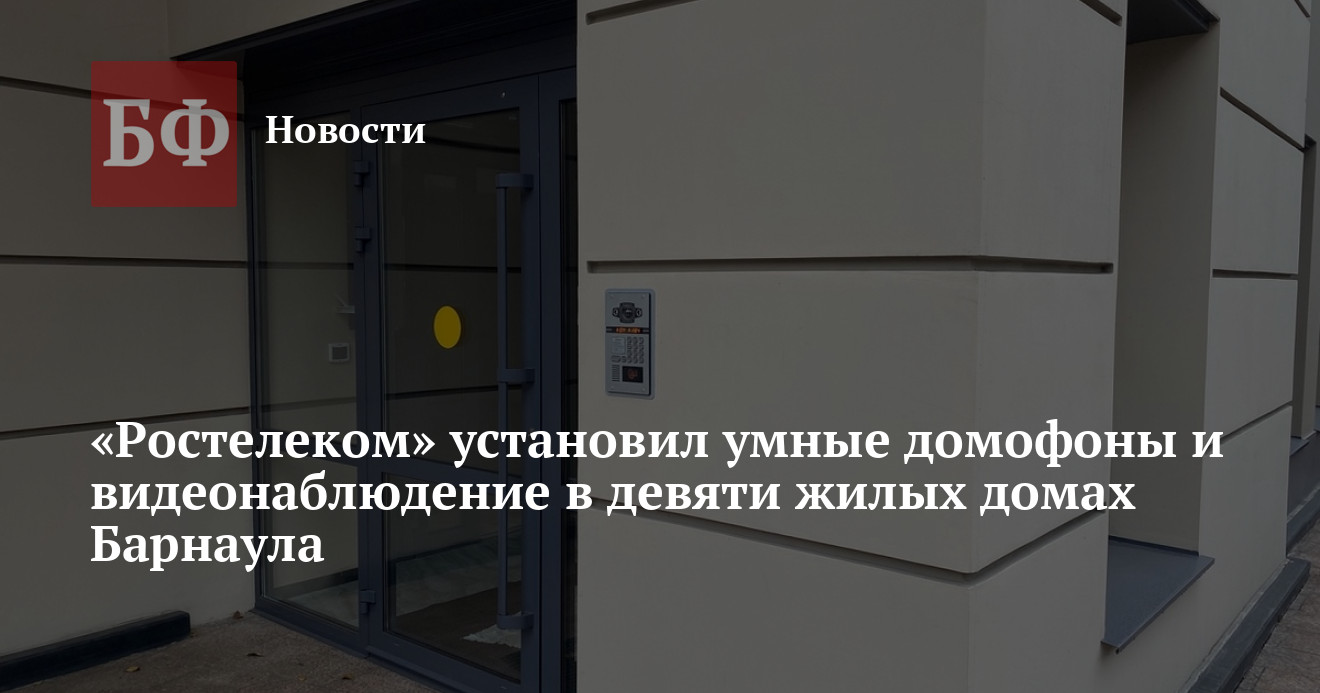 «Ростелеком» в 2023 году установил умные домофоны и видеонаблюдение в девяти многоквартирных домах Барнаула. Услуги являются частью цифровой экосистемы «Ростелеком Ключ», предназначенной для управления и контроля внутри построек и прилегающих территорий. Компания внедряет цифровые сервисы как в новостройках, так и на вторичном рынке жилья.