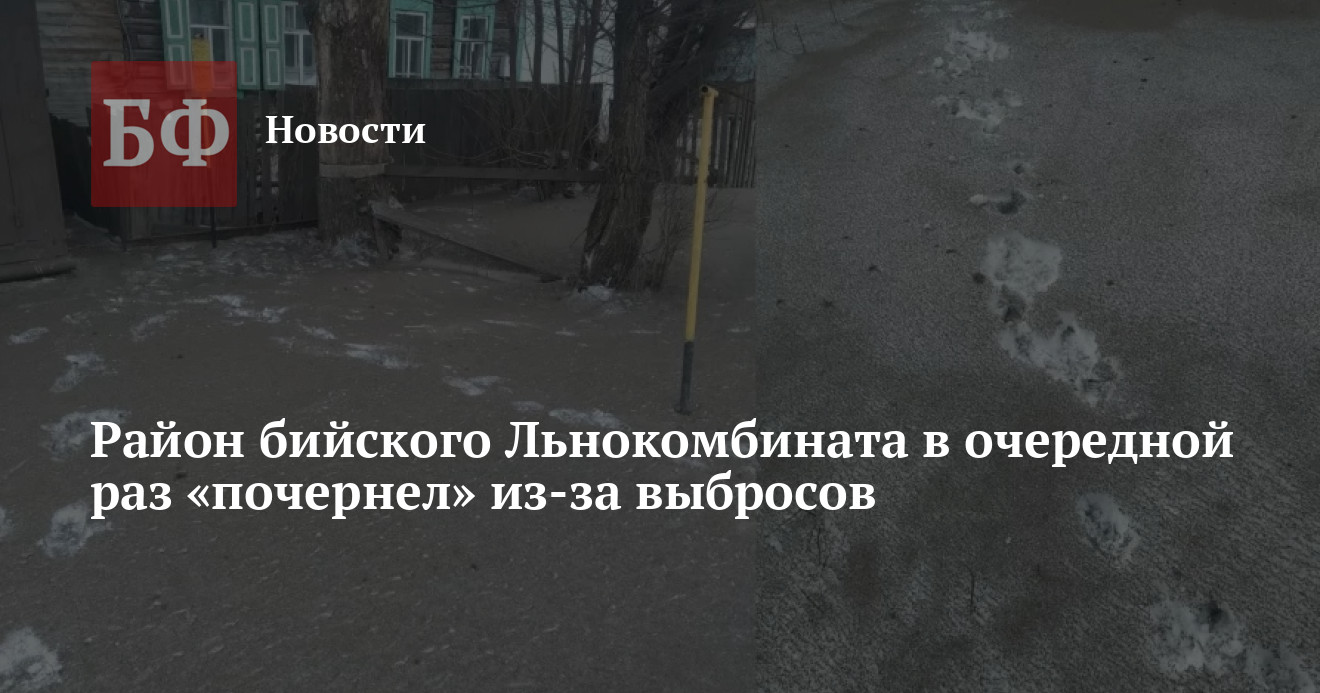 Жители Бийска, чьи дома находятся рядом с Льнокомбинатом, снова пожаловались на выбросы, которые будто бы исходят от предприятия. Они рассказали СМИ, что в результате все вокруг почернело, и предоставили фотофакты. Предполагаемый виновник происшествия — АО «Бийская льняная компания» — ситуацию пока не комментирует. Между тем еще два года назад Минприроды Алтайского края информировало о том, что указанный производитель намерен вложить десятки миллионов рублей в совершенствование системы очистки выбросов.